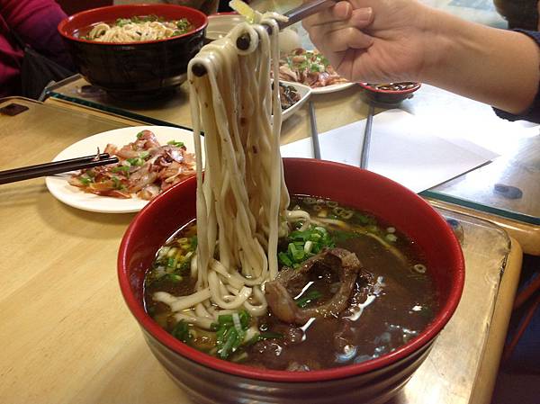 牛肉麵的麵身有兩種選擇 1.刀削麵 2. Q彈手工麵